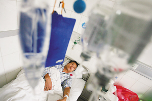 昨日下午,清河急救中心病房,事件中受傷的乘客高振軍正躺在病床上接受治療,床頭病歷卡顯示其右胸部及右大腿處被刀扎傷。