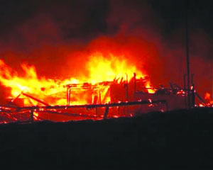 就在船主專心致志捕魚之際,突然他感到江面映出火苗的光亮。回頭一看,只見船艙里冒出一片火來,“不得了,怎么失火了?”船主大吃一驚,連忙丟下漁網,拎起一桶水就潑過去,但杯水車薪,根本不管用,火勢越來越大,他將帶繩的桶扔到江里,想從江里打水上來撲火,但還沒等打上來第一桶水,剎那間,整個船艙就成了一片火海。由于火勢兇猛,他的頭發眉毛都被燒焦了。看著眼前所有東西都著火了,他意識到還是逃命要緊,被迫棄船,轉身向船頭跑去,對著江里的棧船就跳了過去。船主剛跳上棧船,就聽后面“轟”的一聲巨響,放在船艙里的那桶柴油也被燒著了。