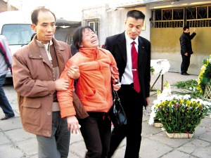 下午4點18分,李氏夫婦在記者的簇擁下來到醫院太平間看女兒的遺體。看過遺體后,紅著眼圈的李旭光攙著痛哭不止的妻子,一起去見醫院領導和參與搶救的醫生。