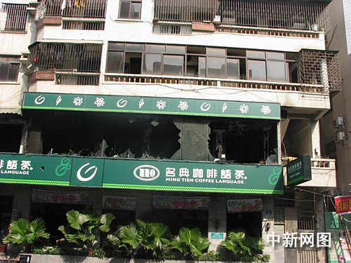 記者在現場看到,火災現場已被警方封鎖,甚至在距離現場數百米遠的路口警方也設置了警戒崗。發生火災的名典西餐廳一片狼藉,西餐廳二樓的玻璃墻已全部破碎,餐廳里的沙發、桌子大部分被燒壞。此次火災約三百三十平方米。