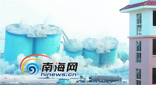 對天涯水泥廠實施爆破是三亞落實節(jié)能減排、保護環(huán)境動真格的表現(xiàn)。天涯水泥廠區(qū)是從8月底開始拆除的,經(jīng)過3個半月的爆破拆除,余下最后7座巨大的鋼筋混凝土結(jié)構(gòu)的儲料倉庫,直徑在11-17米之間。