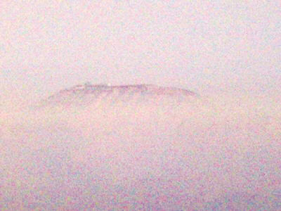 登上蘭山頂后,志愿者共同敲響了新年鐘聲,并在蘭山鐘院等待日出。由于時(shí)處清晨,蘭州城區(qū)被一層薄霧籠罩著,唯有潺潺的黃河在霧氣中忽隱忽現(xiàn)。恰在此時(shí),志愿者李建強(qiáng)突然發(fā)現(xiàn)蘭州市區(qū)的上空多了個(gè)小島。大家定睛一看,果然有一個(gè)小島漂浮在市區(qū)上空。隨行的志愿者趕快拍下了這一幕。在照片的中央,一個(gè)小島橫埂在上面,山尖上的日出慢慢透出了光亮。10余分鐘后,“小島”上的日出消失,蘭州市區(qū)又被霧氣籠罩,海市蜃樓慢慢消失。半個(gè)小時(shí)后,太陽才從遠(yuǎn)處的山坳里露出了“臉”,將新年的第一屢陽光撒向蘭州市區(qū)。