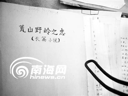 “我愿意是廢墟,在峻峭的山巖上,這靜默的毀滅并不使我懊喪……只要我的愛人是青青的常春藤,沿著我荒涼的額,親密地攀援上升。”1月5日上午,在海口瓊山三門坡鎮(zhèn)黃守培的家里,在《荒山野嶺之戀》小說手稿的第一頁,記者看到了這段深情告白。