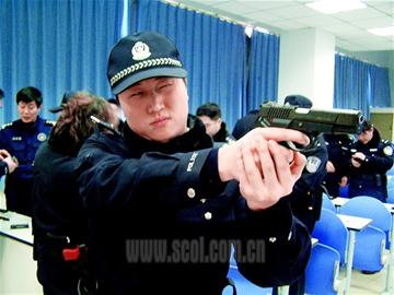上午8時30分,37名隊員教官均腰掛模擬手槍、警棍、電筒和手銬,手持對講機,分成4個班,全副“武裝”列隊進入教室。