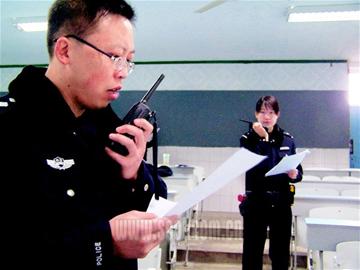 9時至11時,隊員2人一組,左手拿著數張全英文警情稿,右手拿對講機,用英文進行“實戰”通話。二名英語女教官不停地來回穿梭教室內外,時不時對隊員們發音不準之處進行糾正和輔導。由于隊員們之間的通話和交流,均是英語,記者如聽“天書”,整個上午只聽懂他們每次說的最后一個單詞——over。