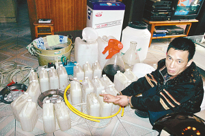 昨晚,記者看到,警方繳獲的氯胺酮半成品,足足裝了兩個(gè)大塑料口袋。“這些毒品流向社會(huì),后果不堪設(shè)想。”現(xiàn)場(chǎng)民警稱。