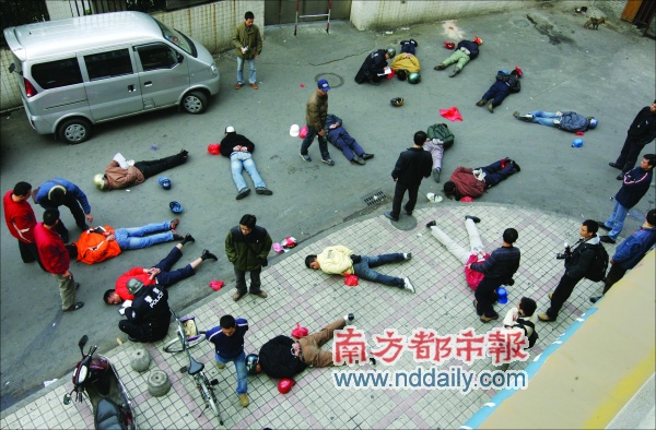 9時(shí)40分,裝扮成乘客的便衣警察從出口緩緩走出,“搭客仔”們跟往常一樣,圍住他們就要作案。“不許動(dòng),警察!”便衣警察大喝一聲,順勢(shì)制服一個(gè)作案嫌疑人。見(jiàn)到同伙被抓,其他“搭客仔”馬上四處逃竄,車站出口頓時(shí)一片混亂,站內(nèi)乘客都往外跑,外面路口的人卻擁過(guò)來(lái)看熱鬧。其中一名男子,飛奔中被便衣?lián)涞乖诘兀帜_朝天還想反抗,被其他趕上來(lái)的便衣合力制服。幾分鐘后,14名涉嫌盜搶的“搭客仔”都趴在了地上。