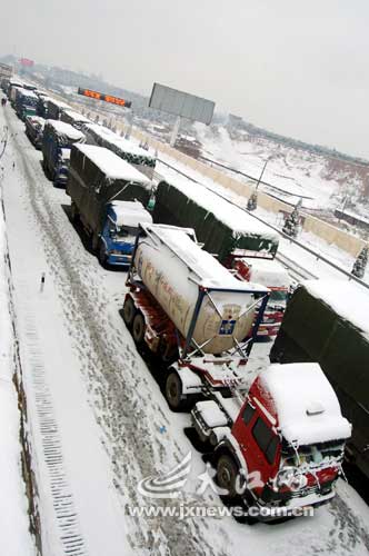 大雪封橋逾萬輛車滯留九江