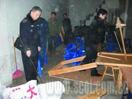 從去年5月起,派出所就經常接到群眾舉報,但每次去查賭,都逮不到人!斑@些人鬼得很,反偵探能力非常強!本讲粌H逮不到組織賭博的人,就連提供賭場的門面老板都找不到,“這個門面都不知道轉了多少次手了,而且也沒有人愿意說實話。”先后跑了幾天都沒有找到人,警方于是開始采取搜繳賭具的方法,每出一次警,就叫來三輪車把桌椅板凳全部拉到派出所的一個倉庫里。不到10天,倉庫都堆滿了。正是因為倉庫都裝滿了,現在才采取砸爛賭具的辦法。