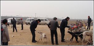 上午11點,場子里還是空蕩蕩的。漸漸地,許多男女賭徒或開車,或騎著自行車拉著狗相繼趕來。中午,一輛車號為“陜-08365警”的警車趕到現場,兩名警察各牽著一只狗走向“賽場”。