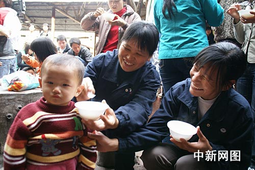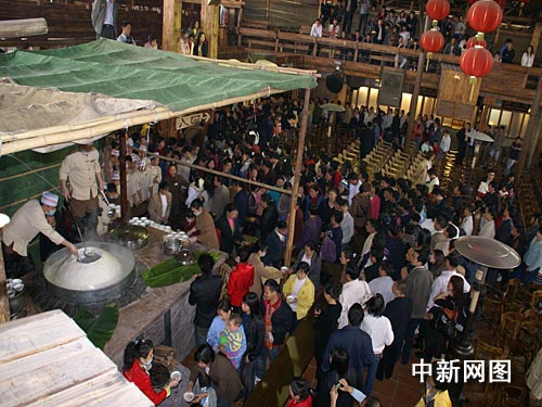 “吃湯圓,賣(mài)湯圓,一碗湯圓三毛錢(qián)。”在動(dòng)聽(tīng)的歌謠聲中,游客臉上都帶著興奮的笑容,按順序排隊(duì)等候工作人員的分吃湯圓。記者粗略的估計(jì)了一下,10余工作人員耗時(shí)一個(gè)多小時(shí)才把大湯圓分完。