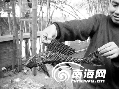 29日下午,海口演豐鎮(zhèn)的幾名村民,在附近小河里捉住了一條“怪魚”。該魚全身布滿堅(jiān)硬的褐色甲殼,嘴巴長(zhǎng)在身子下面,好奇的村民們紛紛前去觀看。