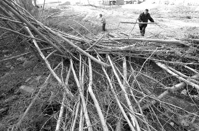 昨日下午2時,記者聞訊來到現場時,陳保民和母親、妻子正在被夷為平地的林地里整理楊樹的“斷臂殘肢”。“好好的一片樹林,一會兒工夫,啥都沒有了,造孽啊!”70歲的陳母抱著一把新鮮的楊樹枝,泣不成聲。
