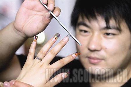 雖然男性美甲師在成都并不多見,然而就全國而言,男性美甲師卻并不新鮮:據(jù)業(yè)內(nèi)人士估計,男性美甲師已占到從業(yè)人員的10%左右。而全國一年一度的“十大美甲師”評選中,每年都會有6—8名男美甲師入選。 (記者譚曉娟攝影華小峰)
