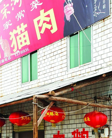 長(zhǎng)沙市民王先生給本報(bào)新聞熱線打來(lái)電話說(shuō),23日中午,他的朋友李先生開(kāi)車(chē)經(jīng)過(guò)湘潭市護(hù)潭鄉(xiāng)時(shí),無(wú)意中發(fā)現(xiàn)了張老板的店,出于好奇,他來(lái)到店里,“老板說(shuō)貓肉是補(bǔ)品,每斤38元,保證新鮮。我沒(méi)吃過(guò),想試試。”李先生說(shuō),剛點(diǎn)完菜,就聽(tīng)到廚房里傳來(lái)幾聲凄厲的貓叫,他跑去一看,發(fā)現(xiàn)一只頭破血流的花貓?zhí)稍诘匕迳希瑥N師正用木棍猛打它的頭。見(jiàn)貓不再動(dòng)彈,廚師一手拎著貓扔進(jìn)裝滿開(kāi)水的大鍋里,另一只手捂上鍋蓋。這時(shí),鍋里傳來(lái)一陣更慘烈的貓叫,幾分鐘后才恢復(fù)了平靜。“太殘忍了!什么人會(huì)想出做這樣的菜?”等菜上了后,受驚不小的李先生沒(méi)動(dòng)筷子就急忙驅(qū)車(chē)回家。
