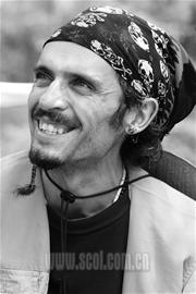 頭上戴著酷酷的骷髏頭巾,蓄著暗紅色的三角尖小胡子,脖子和手腕上掛著古怪的項鏈和手環……昨日中午,一個騎著“哈雷式”自行車,長相酷似海盜的老外在東城拐下街引起了不少好奇者的圍觀。這個名叫Alexandro(如右下圖)的巴西人從2003年就開始騎著自己改裝的自行車出發,橫跨了歐亞大陸的多個國家,接下來的時間里他還將騎著車和他唯一的伙伴——小黑狗“杰”完成環游世界的夢想。