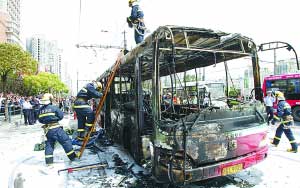 張怡看見離司機座位不遠處有火苗。幾秒鐘后,轟的一聲,整個車燒了起來。車上幾乎是人貼人,火苗沿著人群蔓延。