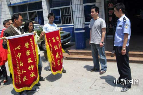 中新網杭州5月14日電(李克偉)4歲女兒在租房門口意外失蹤,隨后接到勒索信,警方引蛇出洞,蹲點守候2天2夜鎖定嫌犯,抓獲3名犯罪嫌疑人,成功破獲這起綁架案。5月13日上午,夫婦倆抱著4歲的女兒帶著錦旗向辦案民警表示感謝。