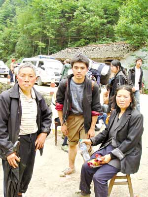 昨天上午開始,也不斷有村民從大山深處爬出來。為了生的希望,這些村民拖家?guī)Э冢宦贩龀,每個人到達山下的時候都一身泥濘。