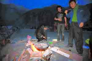 北京記者脫險(xiǎn)后,才發(fā)現(xiàn),救助他們的是一位藏族村民和兩位羌族村民,還有一位60多歲的老人帶著個(gè)襁褓中的嬰兒。他們非常友善,為了北京記者放棄了趕路。他們將自己身上僅有的一點(diǎn)水和食物分給記者,在安全的地方點(diǎn)起篝火,等待營(yíng)救。一晝夜過(guò)去了,直到13日晚,仍沒(méi)有救援的隊(duì)伍抵達(dá),幾位當(dāng)?shù)厝艘缓嫌?jì),決定連夜翻山出去求援。王成則主動(dòng)要求留下陪伴團(tuán)里的兩位傷號(hào)。團(tuán)里剩下的5人經(jīng)過(guò)一晝夜的跋涉于14日上午7時(shí)抵達(dá)都江堰求援。當(dāng)晚7時(shí),本報(bào)前去營(yíng)救的記者張宏江在映秀的百花大橋附近發(fā)現(xiàn)了王成。
