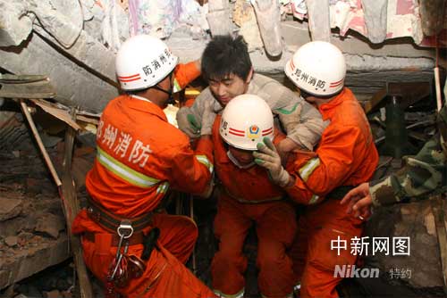 到十六日晚10時38分,經(jīng)過8個多小時的連續(xù)奮戰(zhàn),這名被困廢墟中的20歲男子被成功救出,而此時,他在廢墟中已被困了104小時,創(chuàng)造了生命的奇跡。他的名字叫李青松。完