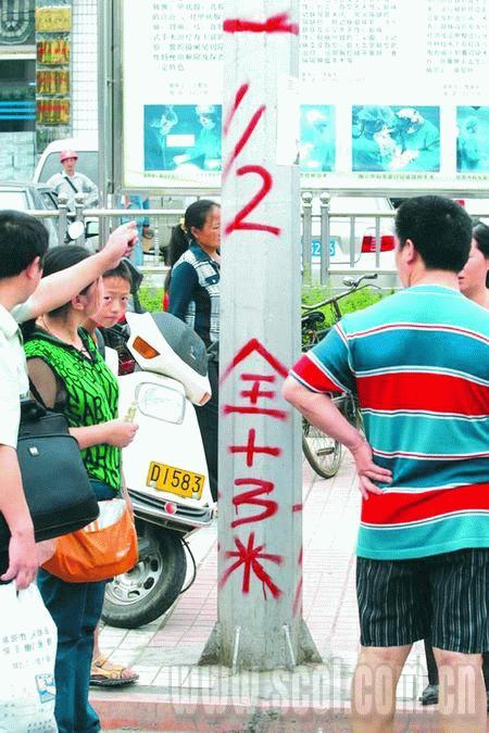 在政府院內右側的三層小樓上,畫出了堰塞湖水潰壩進入城區的比例刻度,有1/3潰壩、1/2潰壩和全潰壩三條線。記者看到,損失最小的1/3潰壩,洪水淹沒線在一樓中上部,距地面高約2.3米。1/2潰壩,洪水將淹沒二樓小部分,全潰壩則淹沒整個二樓,殃及三樓。