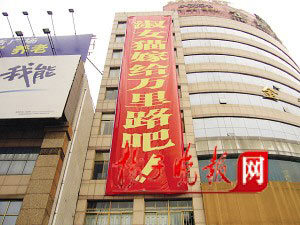 而為這次特殊的“求婚”,戴先生說他前后已經(jīng)準備了一周的時間。條幅做好后,他先后在鼓樓廣場附近找了好幾家大廈,但由于種種原因沒有掛成,最后,當他把想法告訴金龍大廈負責人后,馬上得到了同意。當天上午,他和朋友等5個人花了1個半小時,才把條幅掛好。而對于條幅上面為什么只注明網(wǎng)名、而不寫雙方的真實姓名,戴先生說:“我們相識于網(wǎng)絡,是通過網(wǎng)名相戀的。再者,求婚是對女友一個人,只要她心知肚明就行了。”