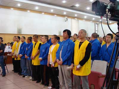 56名被告人在庭審現場。李彥宏/攝