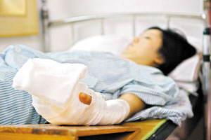 劉女士的手指能否保住,還需觀察7~10天。曹景榮攝