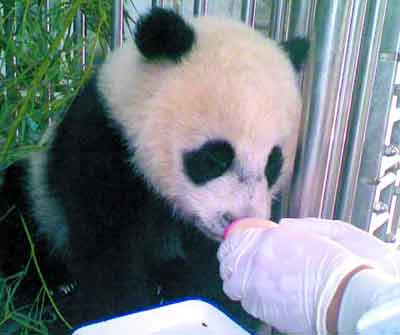 “功夫熊貓”,在省大熊貓搶救中心拒絕人工喂養。工作人員說,野生大熊貓1歲左右的死亡率為60%多,“功夫熊貓”生命堪憂。