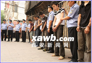 打架吃了虧,就糾集朋友,幫自己報仇;在報仇不成的情況下,又將一家網吧燒毀,給網吧造成了50余萬元的經濟損失。案發后,碑林警方迅速出擊,將涉案的5名主要嫌疑人抓獲。昨日下午,警方在案發現場,對幾名犯罪嫌疑人進行了公開處理,得到了周圍群眾的好評。