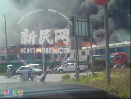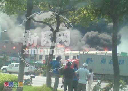 2008年7月17日下午2點30分,新民網接到網友報料稱,奉賢區齊賢鎮有工廠大火,預計損失2億,現有50多輛消防車到場。新民網記者電話連線網友楊先生,楊先生稱現場就像原子彈爆炸一樣,天空全黑了。