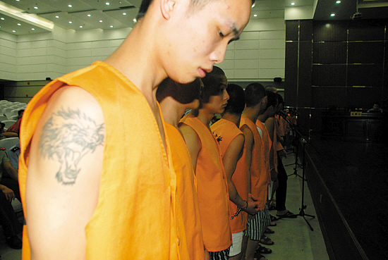只要加入這一團伙,成員都要在身上文上狼、鷹等圖案;在樂清當地一提起該組織的名字,老百姓都會恨得咬牙切齒——昨天,樂清市人民法院開庭審理了特大涉黑組織“狼狗隊”,這個涉黑組織41名成員都非常年輕,大部分是1985年后出生,其中10多名成員未滿刑事責任年齡,最小的一名年僅17歲。