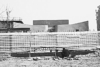 -工人在維修被撞壞的保定監獄柵欄