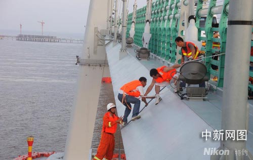 中新網寧波8月22日電(見習記者 何蔣勇 通訊員 張文榮)21日16時50分,位于杭州灣跨海大橋南航道位置,大橋養護中心的3名工作人員在大橋箱梁下面的檢修車上作業時被困。半小時后,三人被安全救出。 這也是世界第一跨海大橋——杭州灣跨海大橋上發生的第一次救人行動。