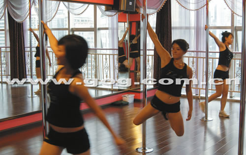 9月2日,夜幕降臨,位于貴陽市噴水池某大廈的鋼管舞訓練房內,強勁的音樂響起,燈光閃爍,5名身穿超短裙的女青年在教練指導下,圍著一根鋼管上下左右的翻轉,她們跳的是——鋼管舞。