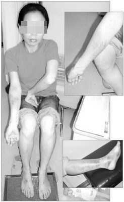 3名女工說:由于長時間戴手套、穿膠鞋工作,手腳不透氣,6名女工均不同程度地染上了腳氣、灰指甲等疾病。而洗衣時要接觸被化學物品污染的工作服以及洗衣藥品,她們的皮膚也都受到不同程度的灼傷。