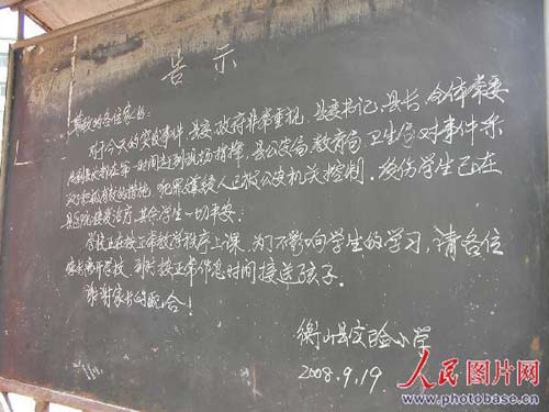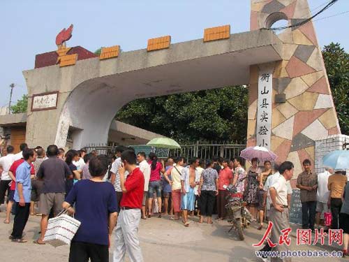 2008年9月19日上午七時許,湖南省衡陽市衡山縣城南試驗小學發生慘劇:4名小學生在教學樓走廊上玩耍時等待上課,被一名男青年從四樓扔到樓下,1女3男4名學生受傷,其中一名男生遇到樹枝阻攔,緩沖后落地僅受輕傷。