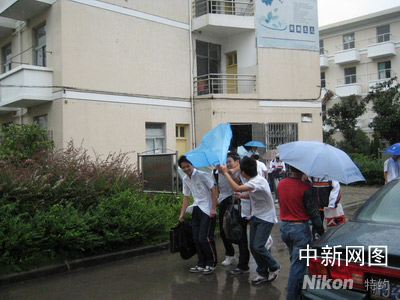 9月29日,浙江臺(tái)州放學(xué)的的學(xué)生的雨傘被風(fēng)吹翻。