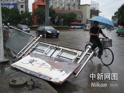 9月29日,浙江臺(tái)州一人行道護(hù)欄被風(fēng)吹倒。陳林聰 攝