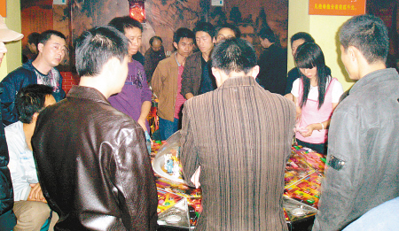 位于西安高新區光華路徐家莊村北口的一家“電玩世界”以電玩娛樂游戲為名,套間內卻擺了6臺大型“動物樂園”游戲賭博機聚眾賭博。記者昨夜暗訪,發現6臺賭機前圍聚了上百名男女擲金歡賭,其中一名男子的大把鈔票被“吞”入賭機,僅1小時便賭掉了萬余元。記者現場報警,害人賭窩當晚被端。