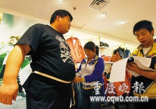 “別人的目光及肥胖帶來的不便,我已經(jīng)習慣,就是衣服問題成了我最頭疼的事。”王杰郁悶地說,他以前的衣服是在老家找裁縫定做的,來渝只帶了三套單衣褲,這幾天氣溫驟降,他連續(xù)跑了5天,足跡遍及主城各大商圈,但仍未買到一件合適衣服。而以前的秋冬,他都是將買來的特大號秋衣秋褲剪破穿在里面,“可現(xiàn)在我要幫老板跑業(yè)務,衣著太破爛不行!