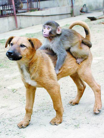 昨天(5日)上午,記者在駐馬店市南海公園動物園看到,一只6個月大的雌性小狗與年齡比自己小一個月的雄性猴崽愉快地在一起玩耍。
