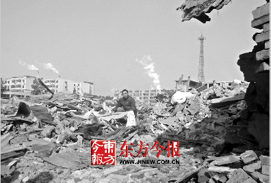 8日凌晨3點,和侄子岳躍彬一起在屋里睡覺的王金樹聽到踹門的聲響。“還沒來得及穿上衣服,門就被踹開了”。“出去!出去!”10多名手掂木棍的男子高喊。王金樹還沒開口,右手臂就挨了一木棒。“我被幾個人拖到了10多米外的地方,他們強迫我跪下。”王金樹說。這時,早已守候在外的一輛大鏟車開始向房子軋過去。光著腳從屋子里跑出來的岳躍彬,被落下的木頭砸到一只腳,幾個人將其拖到了王金樹身邊,也強迫他跪下。“我是做羽絨服生意的,屋里有縫紉機、布料、羽絨等大量原料,值13萬元左右。”王金樹苦苦哀求,但沒人理會。一起“遭殃”的,還有一旁的商戶胥字義,胥字義經營一家百貨商店,數萬元的貨物被埋。就這樣,胥字義、王金樹、岳躍彬3人被強迫跪在路邊,眼睜睜看著自己的店鋪毀于一旦。