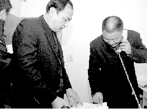 辦公室一位男子給公司領導打電話。
