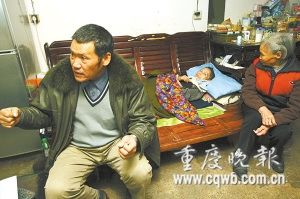 “16日早上,女婿曾背著女兒乘401到觀音巖治病!79歲的張新德婆婆指著一躺在木椅上的病人說,這是她的女兒杜大云,今年58歲,去年被一輛摩托車撞成植物人,全靠她和59歲的女婿唐前生照顧,唐是皮鞋廠退休職工。記者看到,杜大云因動過手術(shù)頭發(fā)很短,如同男子;手和腳用布條綁在床上,腿部肌肉已經(jīng)完全萎縮。張婆婆說,把女兒手綁住是防止其用手抓大便,將腳拉住則是防止她腿部彎曲萎縮。