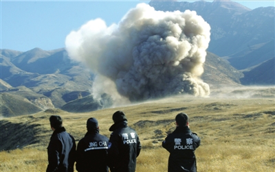 昨天下午1時整,一聲巨響過后,一片蘑菇云騰起于河北懷來的群山中。當天,北京警方在這個專業(yè)銷毀場地集中銷毀1000余公斤各類炸藥和216枚雷管,這是北京警方銷毀品種最多、危險系數(shù)最大的一次集中銷毀爆炸物品行動。銷毀的有梯恩梯、黑索金、奧克托金,以及部分軍用猛炸藥等11個品種,主要為北京理工大學實驗室廢棄不用的爆炸物品。此次銷毀后,本市(北京)城區(qū)內(nèi)將不再有大型爆炸物品庫房,不會再集中儲存爆炸物品。