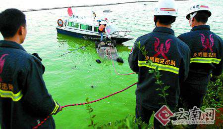 下午6時(shí)許,昆明公安消防支隊(duì)特勤大隊(duì)一中隊(duì)消防官兵到達(dá)后,立即與水警展開(kāi)打撈工作。