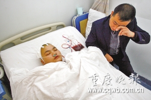 經(jīng)過3小時手術(shù)和24小時術(shù)后觀察,昨日傍晚,大坪醫(yī)院傳來好消息:前日上午不幸被高空墜落的鐵頭叉棍插進頭顱的袁正敏,成功度過第一段生命危險期。