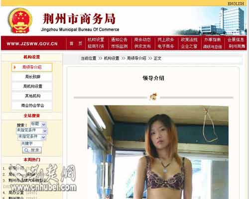 湖北荊州商務局網站被黑 領導圖片變暴露女(圖)